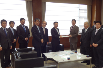 県議会議事堂において,国道125号整備促進期成同盟会(会長・市原健一つくば市長)から、つくばバイパスの整備促進等に関する要望を受けました。