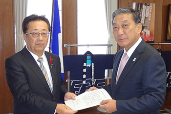 県議会議事堂において、会田真一守谷市長から暴力団事務所撤去に係る請願を受けました。